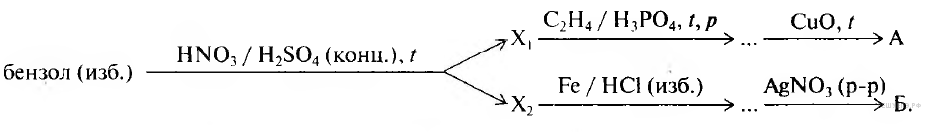 Определите сумму молярных масс (г/моль) органических веществ А и Б, полученных в результате следующих